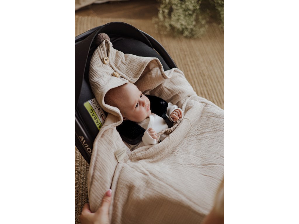 Mušelínová zavinovačka do autosedačky Sleepee je skvelým pomocníkom na cestách s Vašim bábätkom.